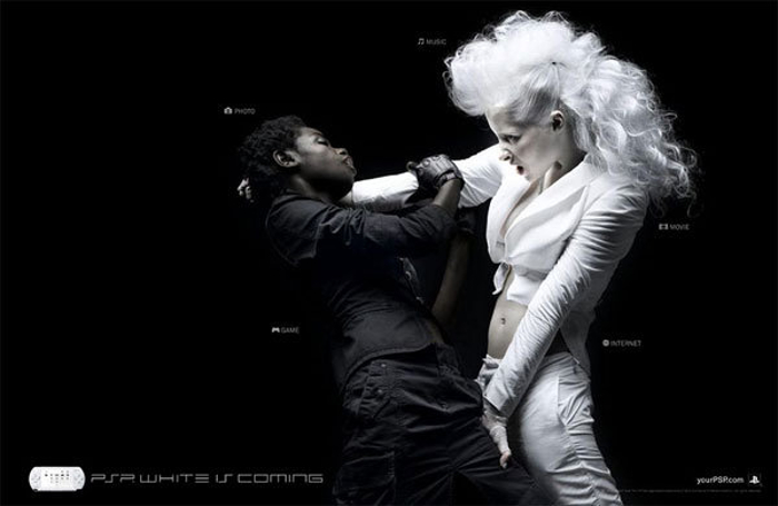 Этот топ был бы неполон, не будь тут хоть одного скандала, связанного с расовой дискриминацией, пусть даже и непреднамеренной. И опять же отличились мастера вызывающей рекламы — компания Sony. В 2006 году компания решила как следует разрекламировать белую игровую консоль PSP.