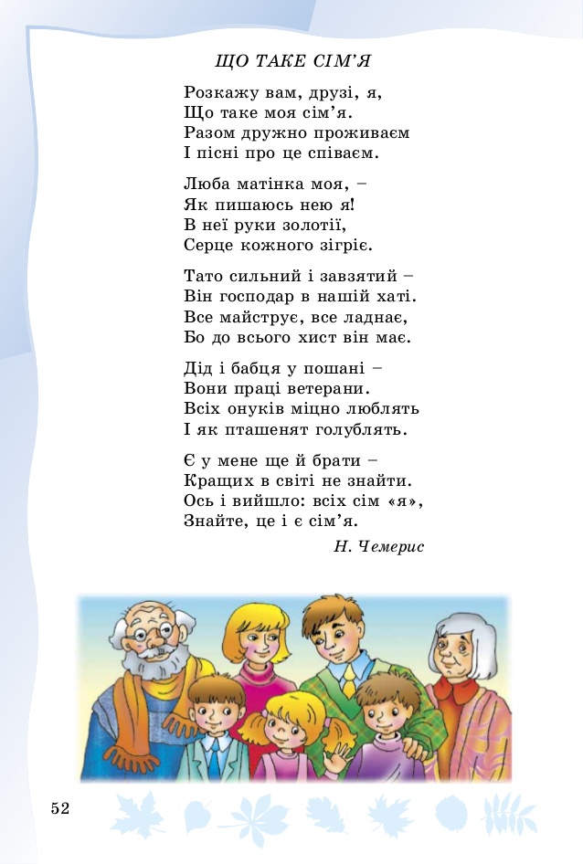 Також вважається нормою, що в сім’ї мають бути мама, тато і дитина, що проявляється в організації сімейних свят, малюнках, які зображують сім’ю. Це не враховує ситуацію, де діти не мають мами, ростуть у неповній сім’ї, або їх виховує тільки бабуся. Нам розповідали випадок, коли у дитини батько-атошник загинув під Іловайськом, а мама померла від раку, і її виховує тітка. І коли цій дитині попадається задача «мама спекла 20 пиріжків», то вона спочатку ридає півтори години, а потім починає розв’язувати задачу. Дуже важливо, щоб школа була не травмуючою для таких дітей, щоб вона не відокремлювала їх від основної маси.