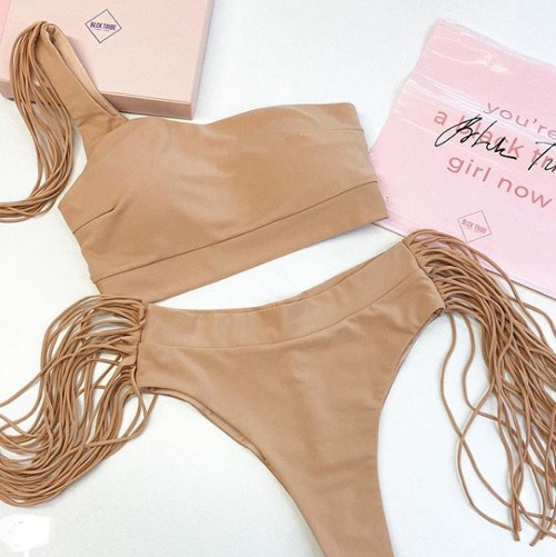 Среди минимализма и строгих линий не так легко найти что-то веселенькое и немного безбашенное, но Blcktrib полностью удовлетворит тягу к необычным формам. Пудровый купальник с бахромой — и вы звезда любой пляжной вечеринки, да и у бара тоже не останетесь незамеченной.