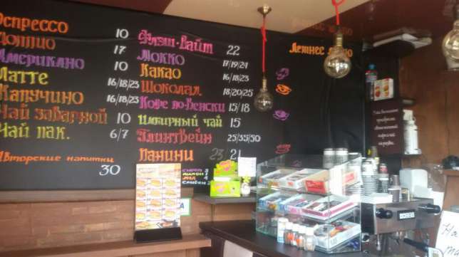 Чуть более экстремальный вариант есть на Львовской площади, где продается кофейня-палатка и прицеп за 3000 долларов. Рядом два бизнес-центра, админздания, храм, «кофе и перекусить негде, только у нас», указано в объявлении. В комплект также входит гриль, умывальник, блендер для фрешей, миксер-сифон для взбивания сливок, два барных стола, штендер, палатка-павильон, у прицепа оборудована небольшая барная стойка. В ассортименте: кофе, чай, глинтвейн, панини-гриль, кондитерка, вода, бульон, летом — мороженое, мохито, фраппе.