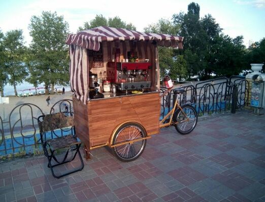 Если хочется заниматься одновременно бизнесом и спортом, то за 12 тысяч гривен можно купить велокофейню. Впрочем, продавать тут можно не только кофе, но и сладкую вату, холодные напитки и что еще придумаете — в комплекте нет никакого оборудования, поэтому установить можно какое пожелаете.
