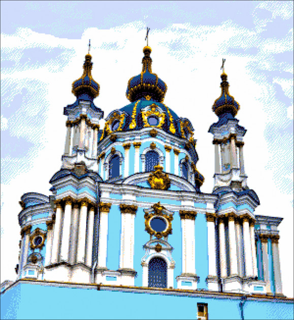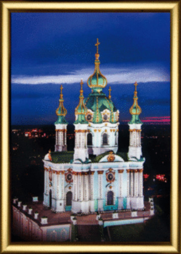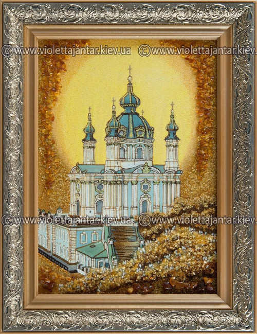 Не хочете холодного металу? То замовляйте Андріївську у теплому бурштині лише за 1350 грн. Звісно, за такі гроші бурштиновою на картині буде не вся пам’ятка, а лише окремі частини. Але бурштин дуже пасує витонченій красуні.