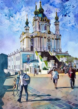 Андріївську в акварелі та оточенні купи народу можна придбати на Shafa.ua за 1500 грн. Робота вже оформлена в рамку. А головне — нагадує про ті часи, коли на улюбленому узвозі кипіло життя та юрбився натовп.