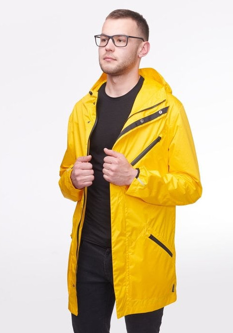 Желтый мужской плащ-дождевик Dandelion сделан из мембранной дышащей ткани, имеет водоотталкивающие и итальянскую фурнитуру, светоотражающие элементы. А еще он складывается в свой собственный карман!