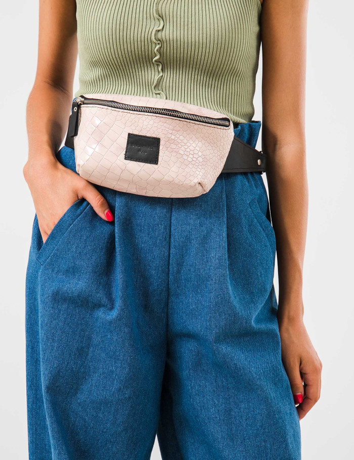 Розовая кожаная поясная сумка Squirrels bag — 999 гривен.
