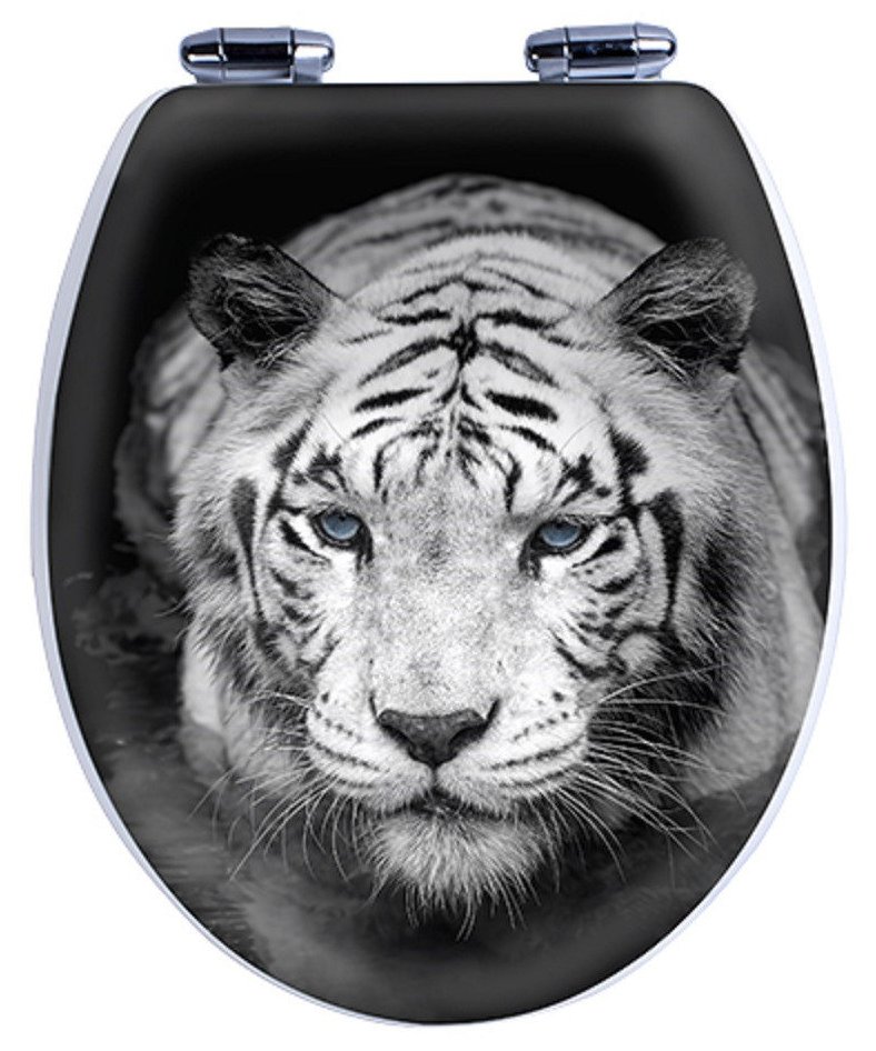Теперь посмотрите на результат своих трудов. Если вам кажется, что все идеально, можете дальше не читать. Если вышло не очень, есть один радикальный способ исправить ситуацию — выбросить все (кроме унитаза) и купить новую крышку. Сейчас в моде рисунки с 3D-эффектом и микролифт — это когда крышка медленно опускается, а не падает с громким «бух» на сидушку. Стоит такая крышка дороже, чем все предыдущие аксессуары вместе, зато теперь наверняка будет красиво. Есть расцветки на любой вкус — бабочки, которые будто взлетают с крышки, стильный мопед, луна и море, грозный тигр, который благодаря 3D-эффекту выглядит очень реалистично.