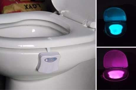Чтобы красивую наклейку было видно даже ночью, нужно унитаз чем-то подсветить. Не беспокойтесь, вам не придется изобретать хитроумное устройство с фонариком, все уже придумали за вас. Подсветка или, как назвал этот товар один из продавцов, посадочные огни для унитаза — небольшой прибор, который крепится под крышку. Он работает на батарейках и выглядит незаметно — никаких проводов и непонятных кнопок. Есть встроенный датчик движения, так что устройство не будет зря разряжать батарейки, а включится только к вашему приходу. Можно менять цвета — всего их восемь.