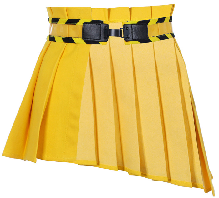 Далі в нас винятково дівоча модель моднючої баски, однак і хлопи, що мають вузьку талію та Шотландію у серці, можуть таку носити, ми за рівність. Сама баска з бавовни, пояс на ній з поліестеру, щільно пристрочений, а колір якраз підходить до яскравого жовтого листя.