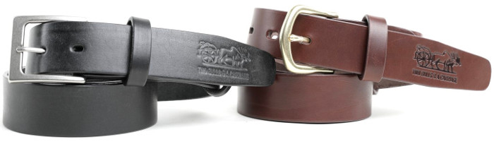Перейдемо до класики — наступним буде ремінь від TwoBulls&ACarriagе. Тут шиють з натуральної шкіри майже все: і взуття, і сумки, і блокноти, і ремені. Девіз сімейної майстерні: «Ваші онуки будуть боротися за право володіти цією річчю». З огляду на якість це — не порожні обіцянки. Ремені виготовляють вручну з цільної натуральної шкіри та латунної фурнітури. Бувають коричневі та чорні, підганять під вас прямо на місті, бо це вам не мас-маркет.