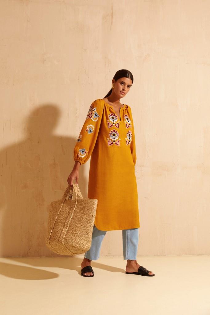 Останні роки тісно співпрацюємо з молодими дизайнерами вишивки. Можу сказати, що вишивка у нас — авторська, в ній багато орнаментів, що містять елементи тварин або рослин. Це вже не вишиванка у класичному розумінні, бо у нас і силуети змінені. Скоріше це вишитий одяг або одяг з елементами вишивки. Є і більш класичні фасони.