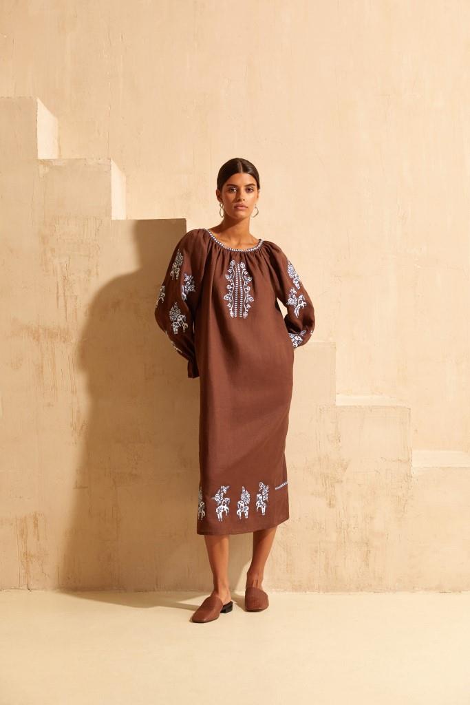 Коли з’являється нова ідея, створюємо нову капсулу — свого роду обмежену колекцію, об’єднану певною темою. Скажімо, нещодавно випустили капсулу, присвячену червонокнижним рослинам та тваринам. Тоді ми створили сукні та сорочки з вишитими зображеннями зубра, горностая, зайця білого, цибулі ведмежої, ялівцю високого тощо. Певну частину коштів, отриманих від продажу цієї капсульної колекції ми передали притулку для собак та котів «В добрі руки» у місті Вишневому.