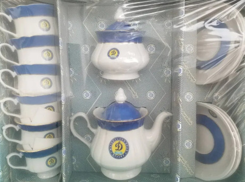 Так, існує навіть порцеляновий сервіз з символікою ФК «Динамо (Київ)». Він складається з 14 предметів: 6 чашок, 6 блюдечок, чайник та цукорниця. Тому якщо ви хочете під час вишуканого чаювання обговорити майбутні перемоги команди, то 1450 гривень — і ваша мрія здійснена!
