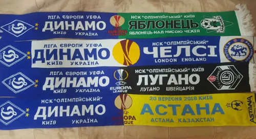 В іншого автора оголошення є різні єврокубкові шарфи, і у цьому випадку вже можна придбати по одній штуці. Щоправда, вони з ігор минулого та позаминулого років. Купити можна по 130 гривень.